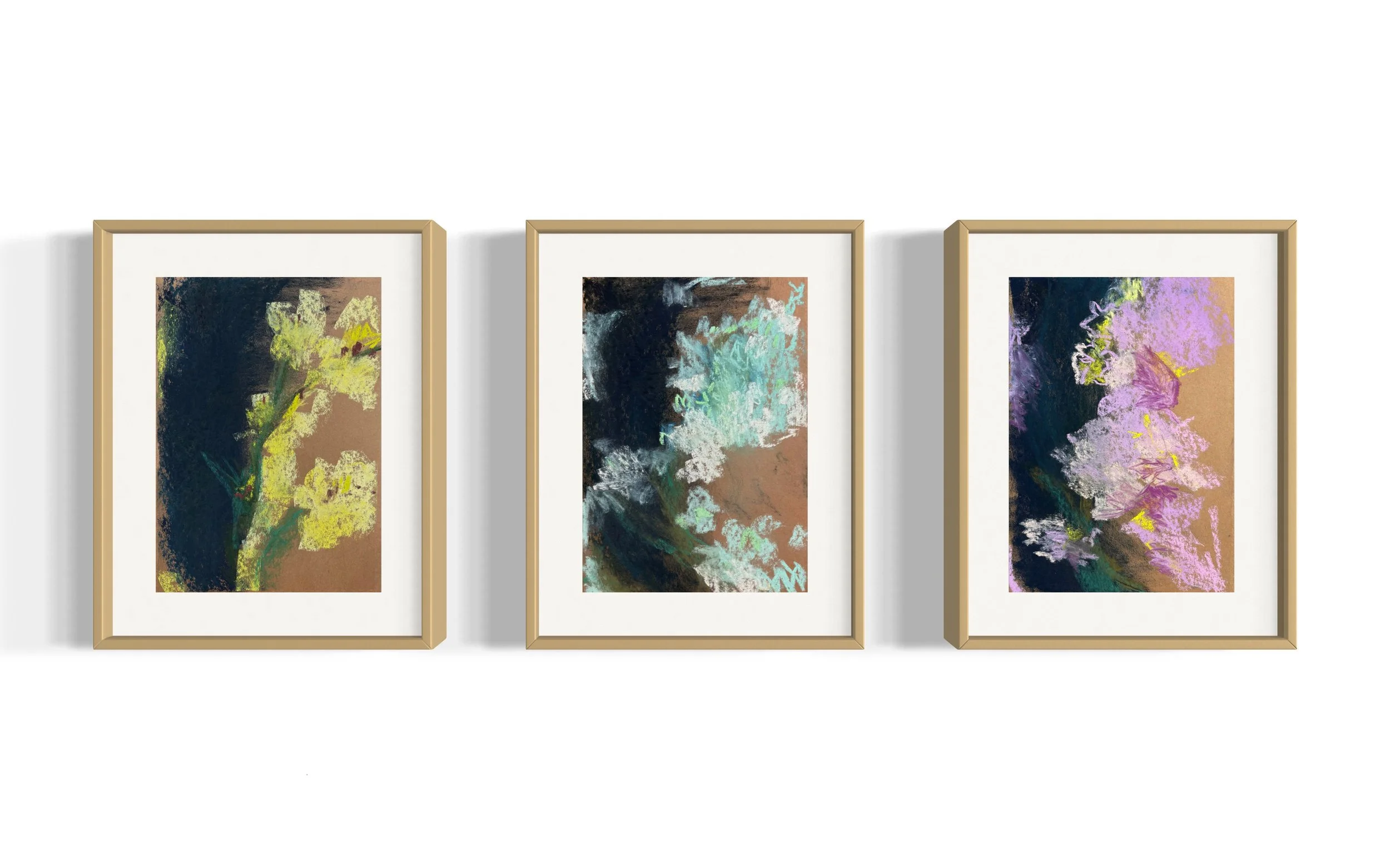 Abstract BOTANICA sketch series (2025), pastels on paper